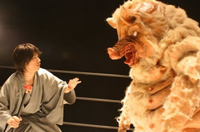 男人想通後也興起雕刻仁王像的念頭,他回去也拿了無數的木頭,他學運慶在旁邊跳舞,卻總是雕不出仁王像。從木頭中出來的總是熊吃魚的雕像(囧)↓